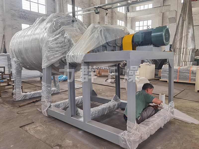 经过我厂20多天的生产,这两台真空耙式干燥机制作完成,准备发货。考虑到长途运输及中途转运等情况,为了保证运输过程中避免途中设备的损伤,我们对设备进行了气泡膜和缠绕膜包装,对零配件也专门定做了木箱。