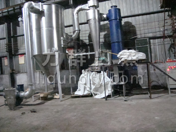 2、工作原理: 经换热器加热后的洁净空气被鼓入进风口,以适宜的速度旋入干燥室底部的环隙,然后按切线方向进入干燥室,并呈螺旋状上升:同时,物料则由可无级调速的加料器定量加入塔内。在干燥塔内,物料与热空气进行充分、高效的质热变换,被干燥的粉状物料随同热风一起输送至分离器,其中成品收集包装,而尾气则进一步经除尘装置处理后排空。